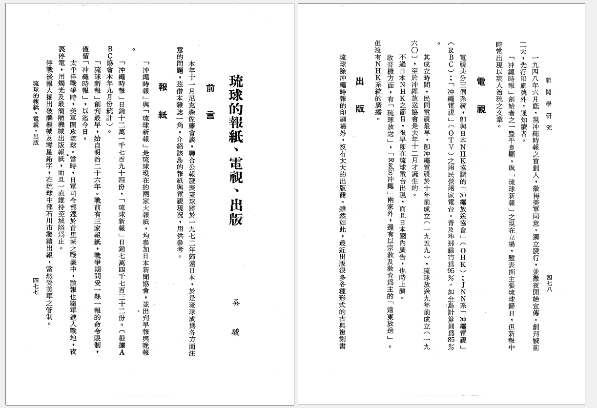 出版;琉球;報紙;電視