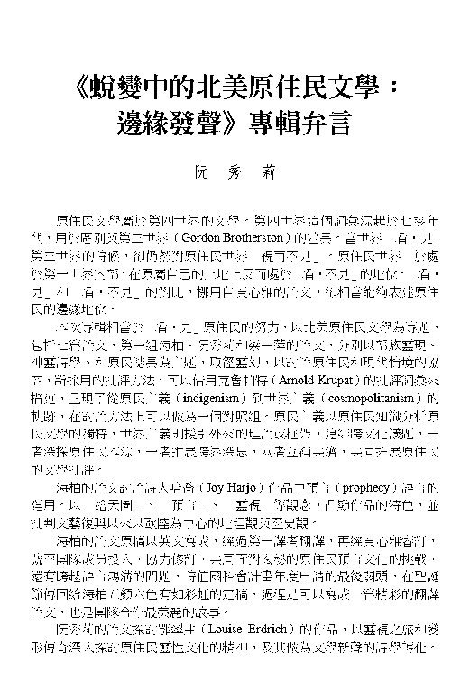 蛻變中的北美原住民文學:《邊緣發聲》專輯弁言