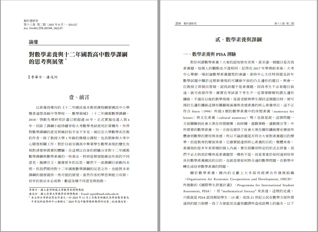 (國立臺灣師範大學數學系特聘教授)