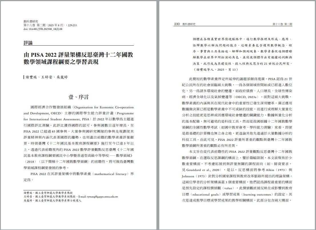 由PISA 2022 評量架構反思臺灣十二年國教數學領域課程綱要之學習表現